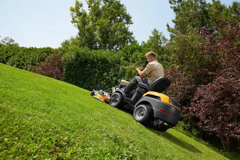 Тип травы и рельеф участка: На участках с высокой травой или сложным рельефом (например, холмистая местность или участки с большим количеством препятствий) лучше использовать райдеры с более мощными двигателями. Это обеспечит эффективность и способность справляться с тяжелыми условиями.