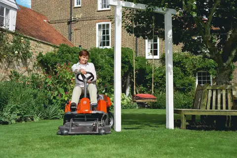 Маневренность и комфорт: Садовые райдеры HUSQVARNA обеспечивают легкость в управлении и возможность работы в сложных ландшафтных условиях.