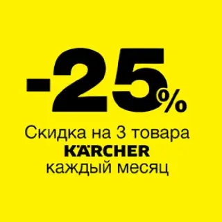 Для того, чтобы дарить подарки — не нужен повод! Поэтому каждый месяц мы дарим вам скидку 25% на 3 разных товара Karcher.